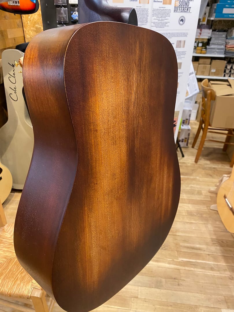 De volledig mahoniehouten constructie — top, achterkant en zijkanten — levert een diepe, ronde toon met uitgesproken mids, ideaal voor akkoorden, begeleidingen en singer-songwriters. De D-14-fret body zorgt voor krachtige projectie, terwijl de dovetail neck joint de resonantie optimaal doorgeeft.