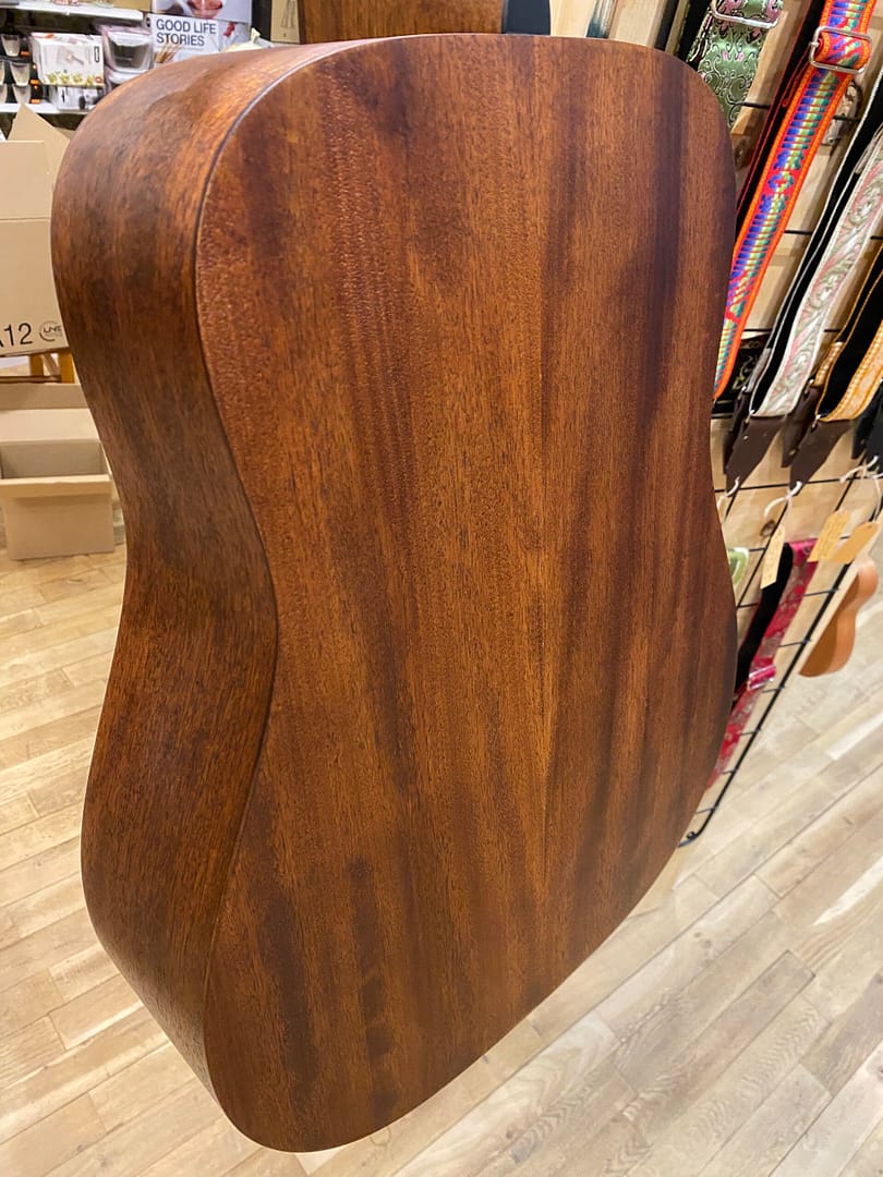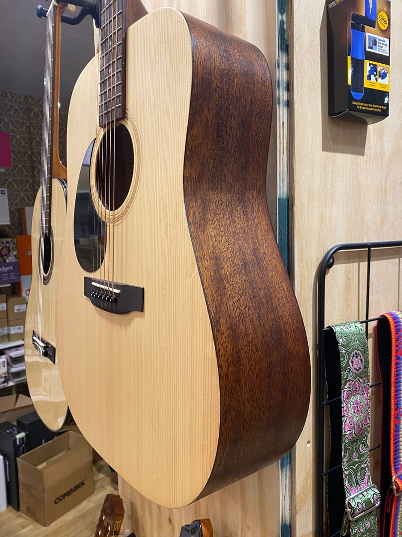 De Sitka sparren top zorgt voor een heldere, dynamische toon met veel projectie, terwijl de mahonie achter- en zijkanten warmte en diepte toevoegen aan het geluid. Dankzij de dreadnought bodyvorm is deze gitaar uitermate geschikt voor zowel stevig slagwerk als krachtig fingerpicking-spel.