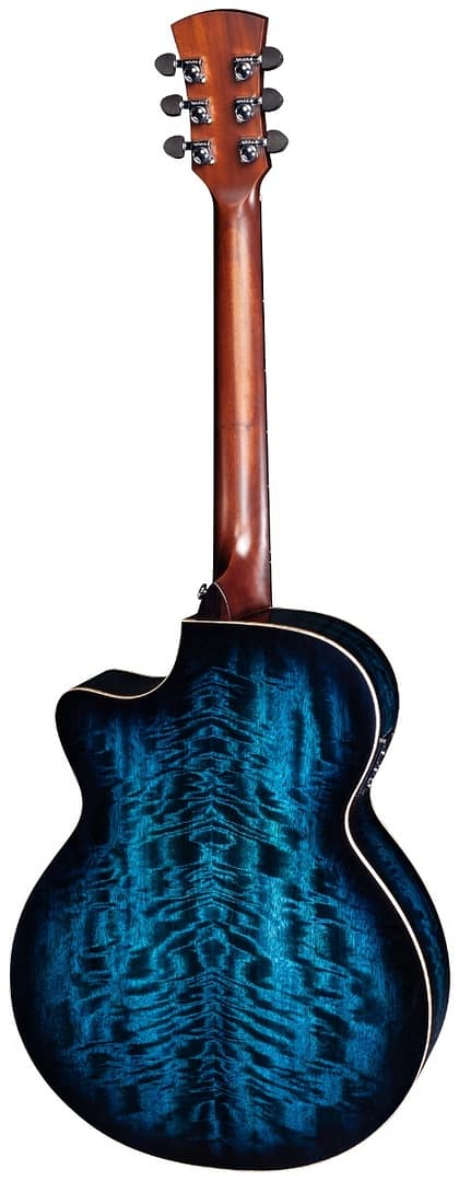 De Faith Blue Moon Venus is een unieke en exotische elektro-akoestische gitaar die opvalt door zowel haar uiterlijk als klank. Het gebruik van massief Java mangohout voor het bovenblad, de zij- en achterkant geeft deze gitaar een warme en karakteristieke toon. Elke gitaar heeft een unieke nerf en kleurschakering, waardoor geen twee exemplaren hetzelfde zijn.