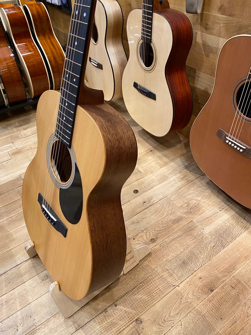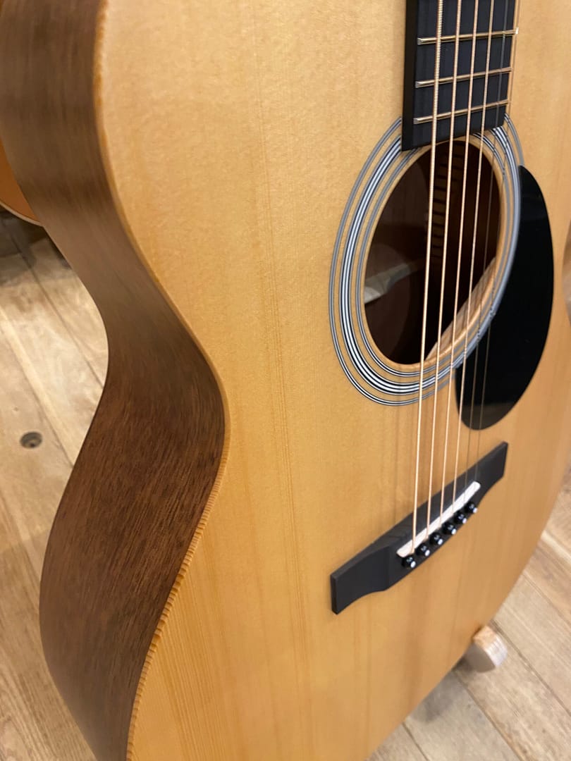 Dit orkestmodel, met halsovergang bij de 14e fret, beschikt over een solide Sitka fijnsparren bovenblad in combinatie met een mahoniehouten body. Samen zorgen ze voor een heldere, warme klank met sprankelende middentonen, wat deze gitaar bijzonder geschikt maakt voor fingerpicking en lichte akkoordenbegeleiding bij zang.