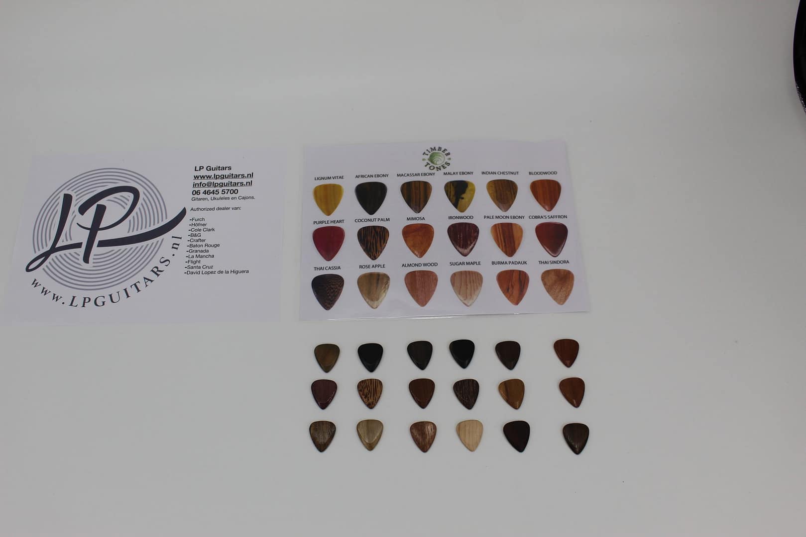 TimberTones zijn gemaakt van natuurlijke materialen, zoals hout, been, hoorn, schelp, steen enz. Deze materialen hebben elk hun specifieke eigenschappen die van invloed zijn op de feel en sound van je gitaarspel. Een niet onbelangrijke eigenschap is bovendien dat ze ecologisch verantwoord zijn (want gemaak van restafval uit diverse industrieën). Er is immers al genoeg plastic in deze wereld !